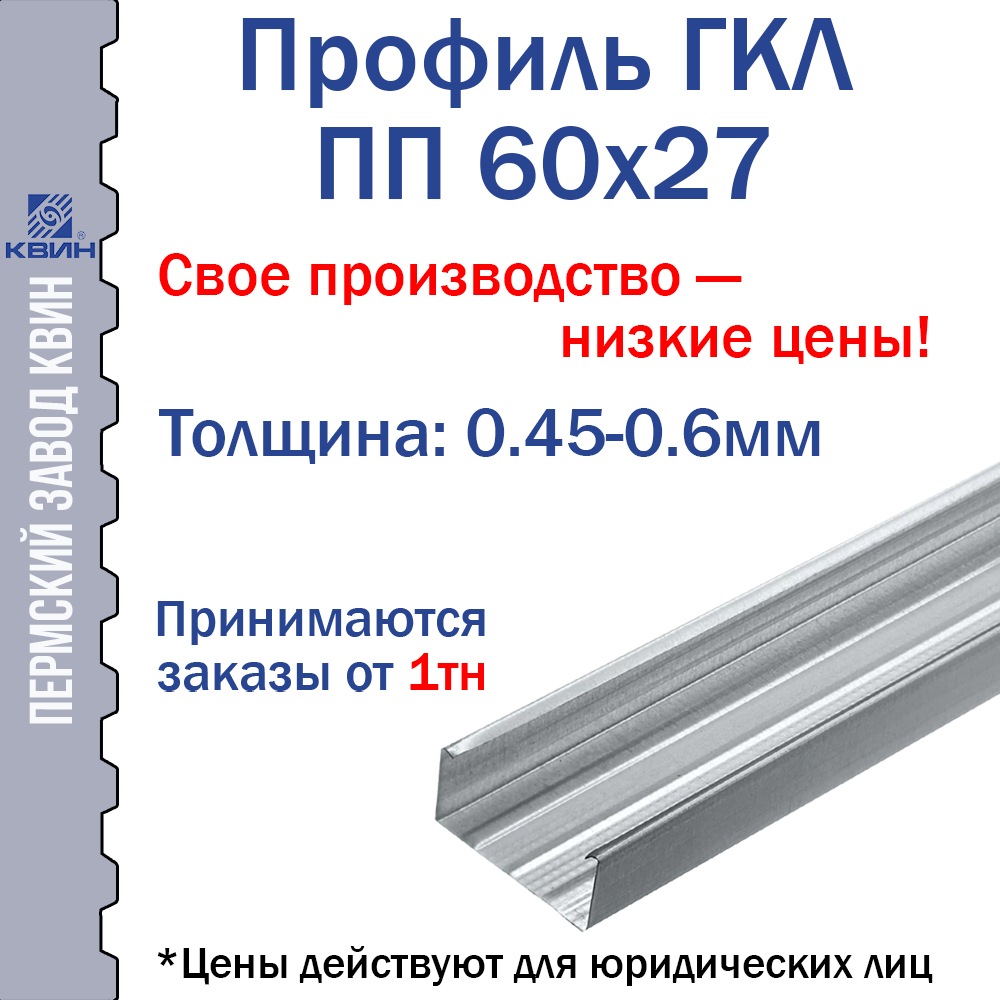 Профиль для гипсокартона (ГКЛ) Профиль потолочный 60х27 0.45 цинк