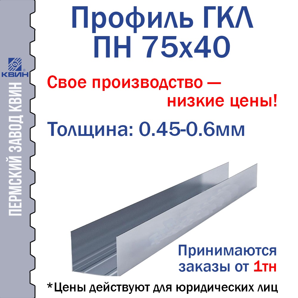 Профиль для гипсокартона (ГКЛ) Профиль направляющий 75х40 0.6 цинк