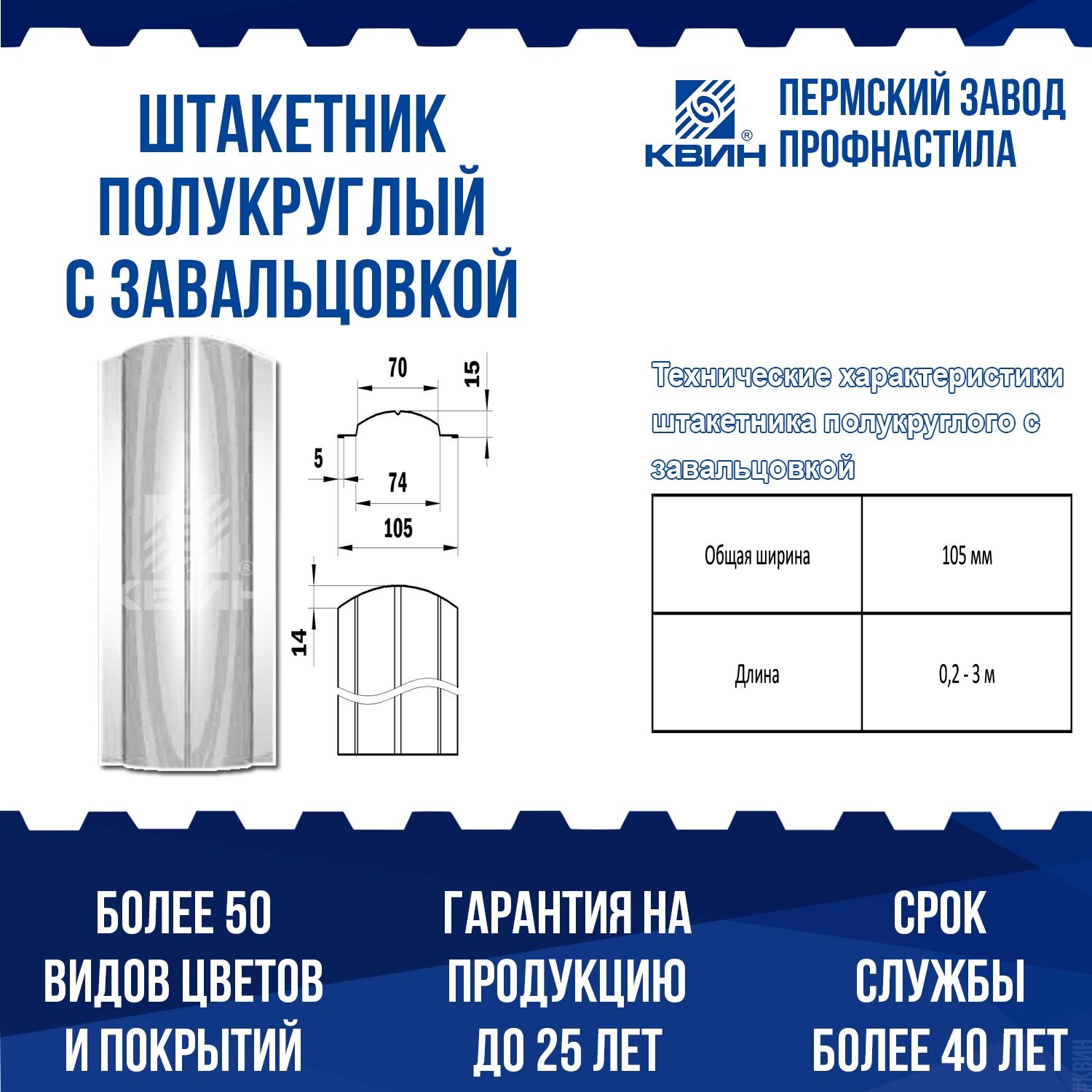 Штакетник Полукруглый с завальцовкой слоновая кость RAL 1014 по лучшей цене в Перми, всего от 98 рублей.